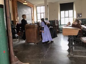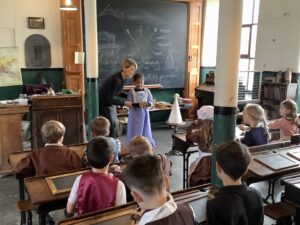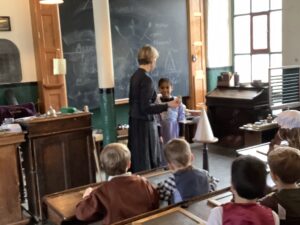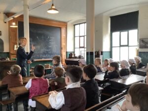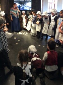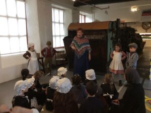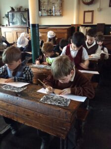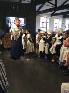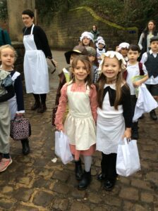 Year 2 had a brilliant trip to Leeds Industrial Museum at Armley Mill to learn about life in the Victorian era. In the morning, we experienced life as a Victorian mill worker. We learnt about the different jobs and machines that they used and went to a mill workers cottage to see what their house might have been like. We were very surprised to learn how hard simple tasks like washing clothes and cooking meals were back then! In the afternoon we pretended to be Victorian school children. We had a very strict teacher and learnt about lots of punishments but we also got to try writing on a slate and using a dip pen and ink! We even had to do drill to keep our minds and bodies healthy.