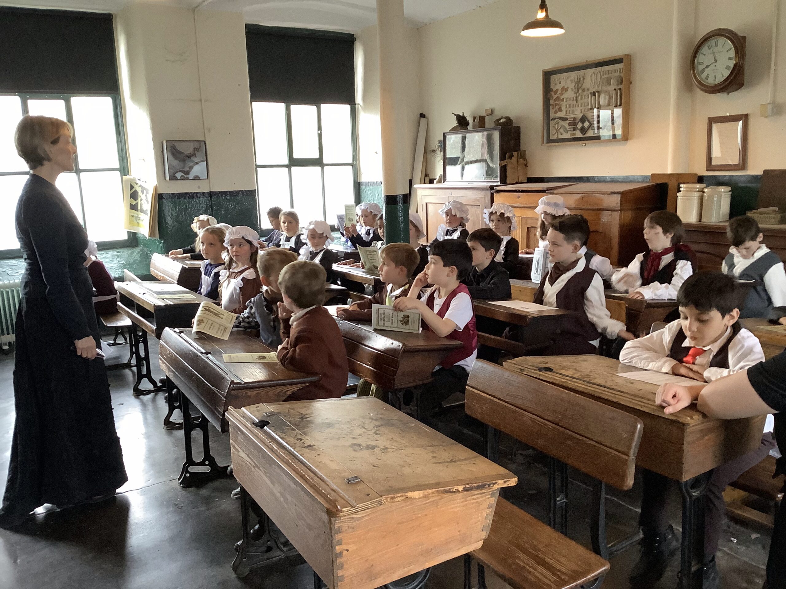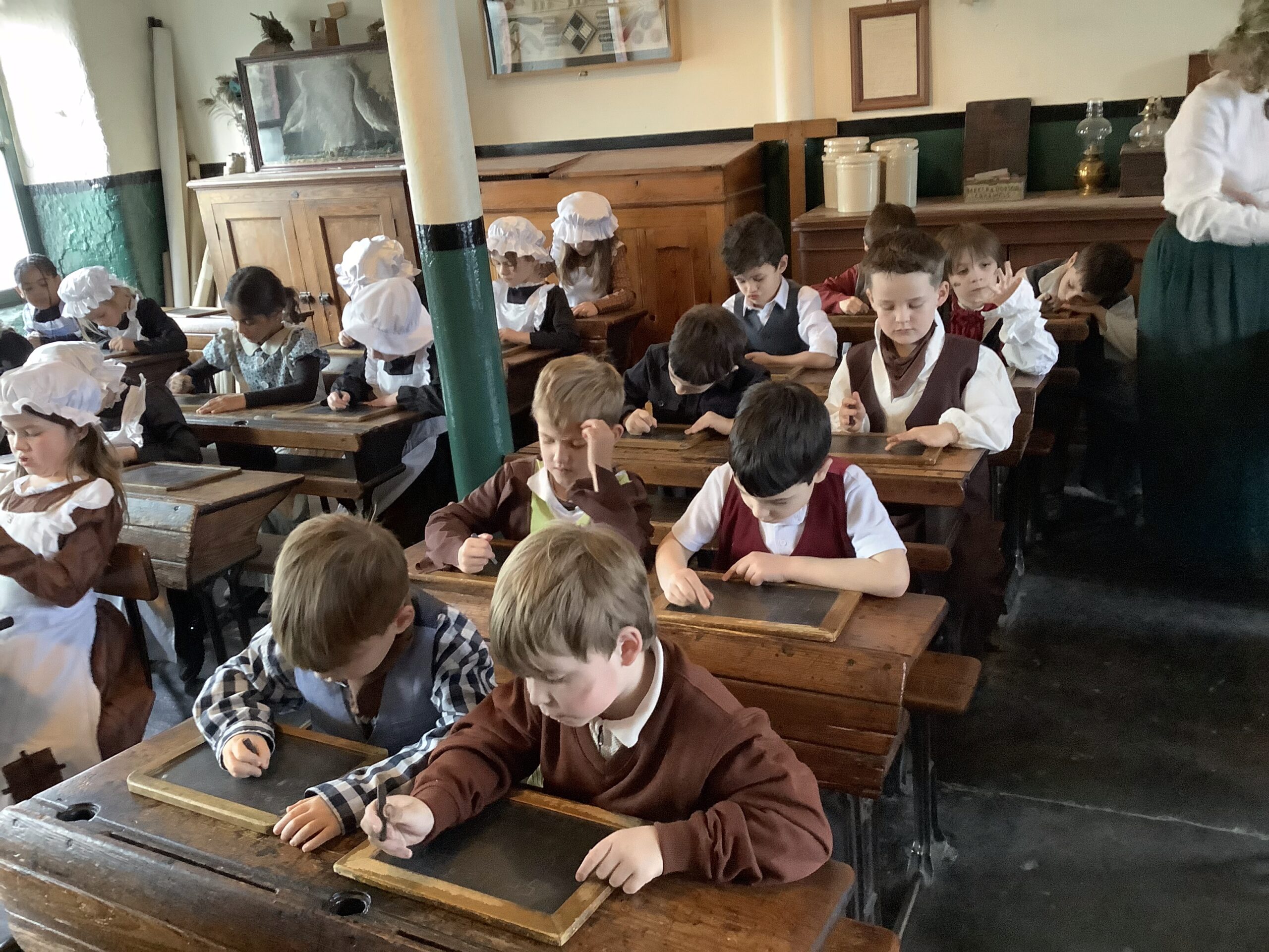 Year 2 had a brilliant trip to Leeds Industrial Museum at Armley Mill to learn about life in the Victorian era. In the morning, we experienced life as a Victorian mill worker. We learnt about the different jobs and machines that they used and went to a mill workers cottage to see what their house might have been like. We were very surprised to learn how hard simple tasks like washing clothes and cooking meals were back then! In the afternoon we pretended to be Victorian school children. We had a very strict teacher and learnt about lots of punishments but we also got to try writing on a slate and using a dip pen and ink! We even had to do drill to keep our minds and bodies healthy.