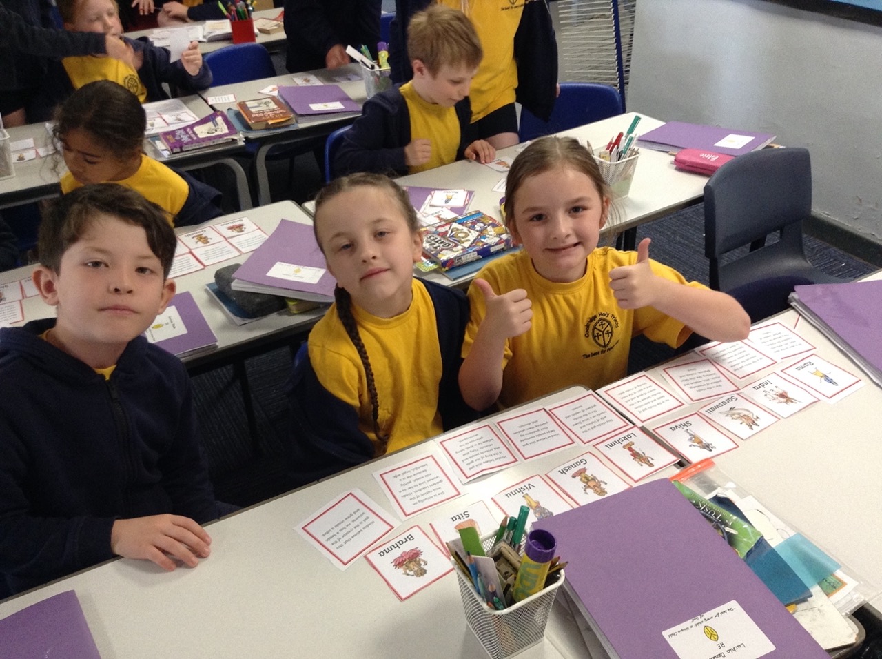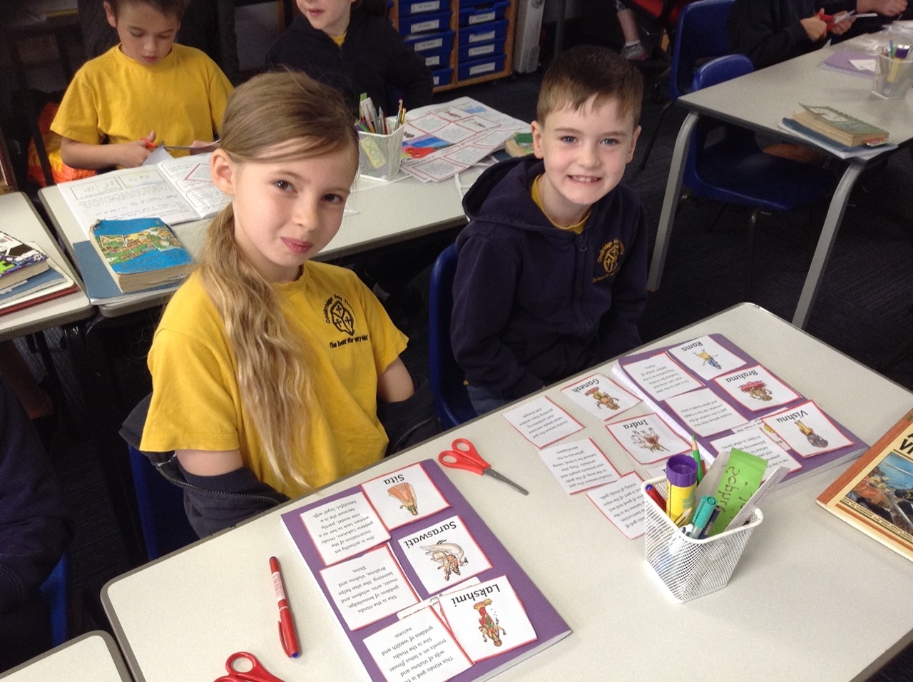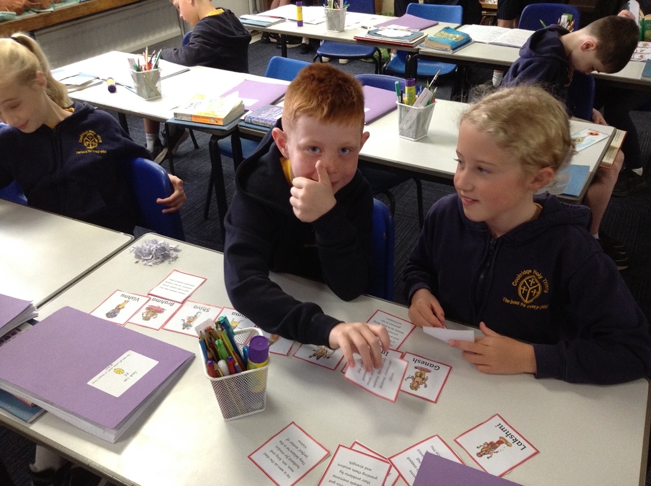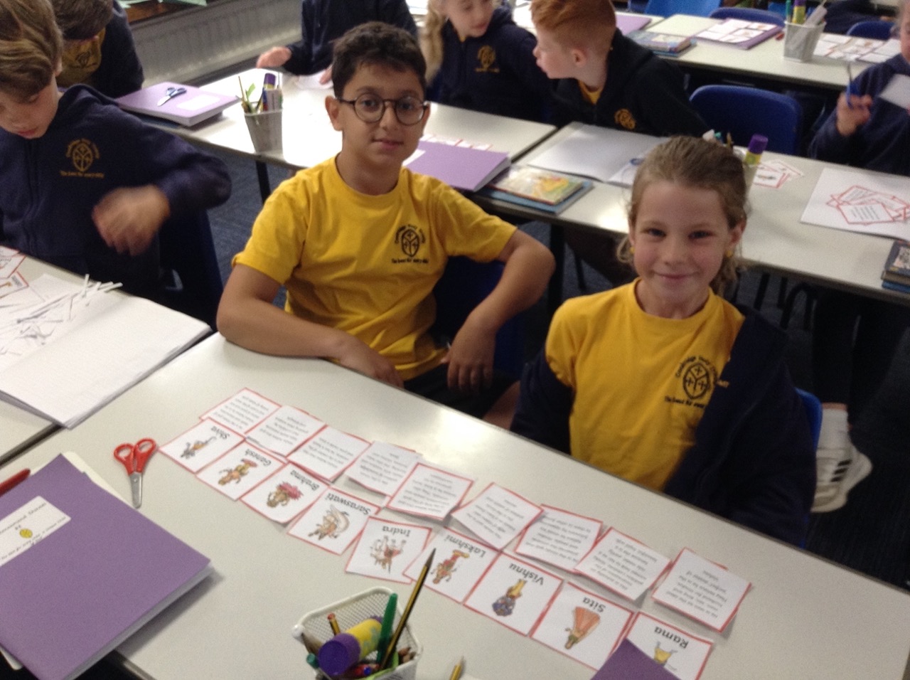 We learnt about Hindu deities and matched the pictures to the descriptions in pairs.