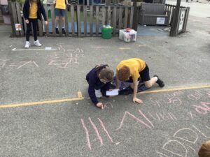 4W thoroughly enjoyed getting their hands a bit chalky in today’s maths lesson where we were learning about Roman Numerals. The class covered the playground Roman Numerals and were challenged with coming up with different number using chalk. Some children even made their own Roman Numeral hopscotch.