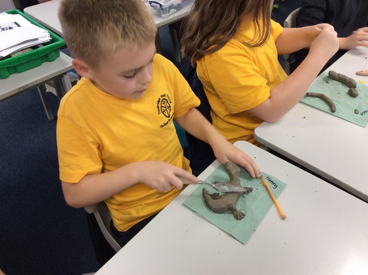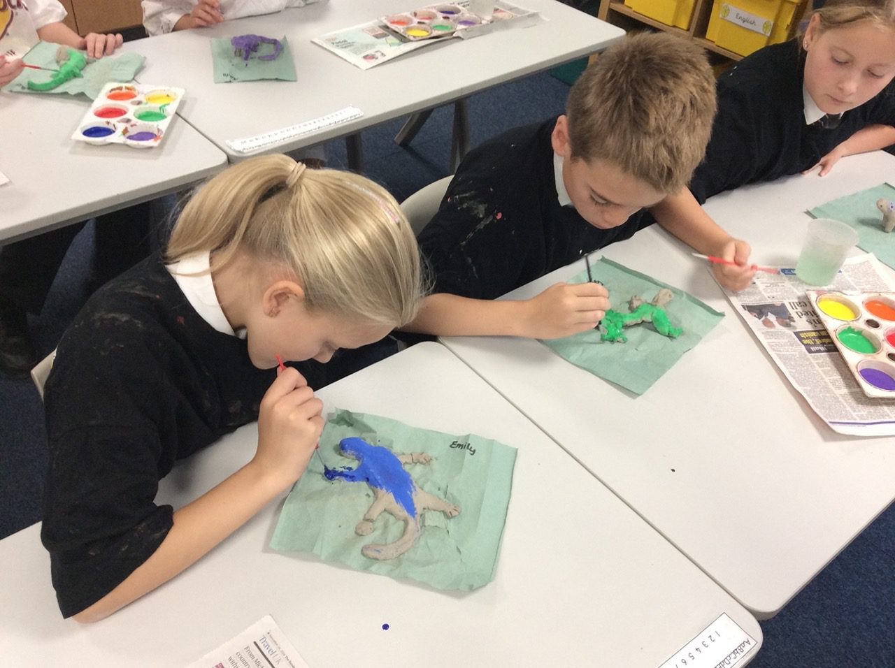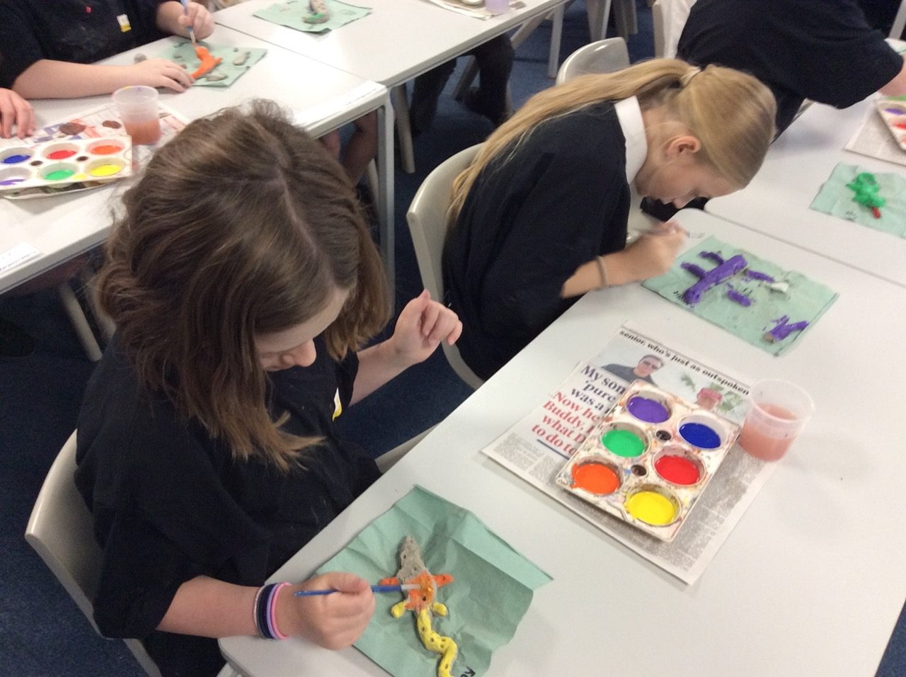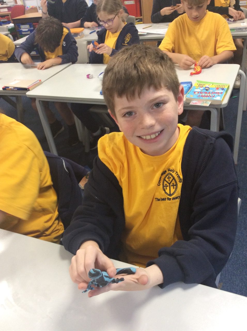 Year 5 are reading “Holes,” as part of our America topic and have been using various materials and techniques to create lizards. Inspired by the work of famous Spanish architect Gaudi, who created the mosaic dragon, Year 5 have created mosaic lizards and sculpted lizards using clay. They used the appropriate tools to add detail such as eyes and scales, drawing on inspiration from nature and their pattern skills they have been developing.