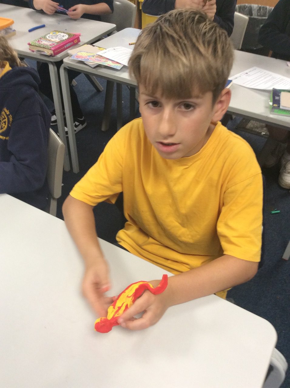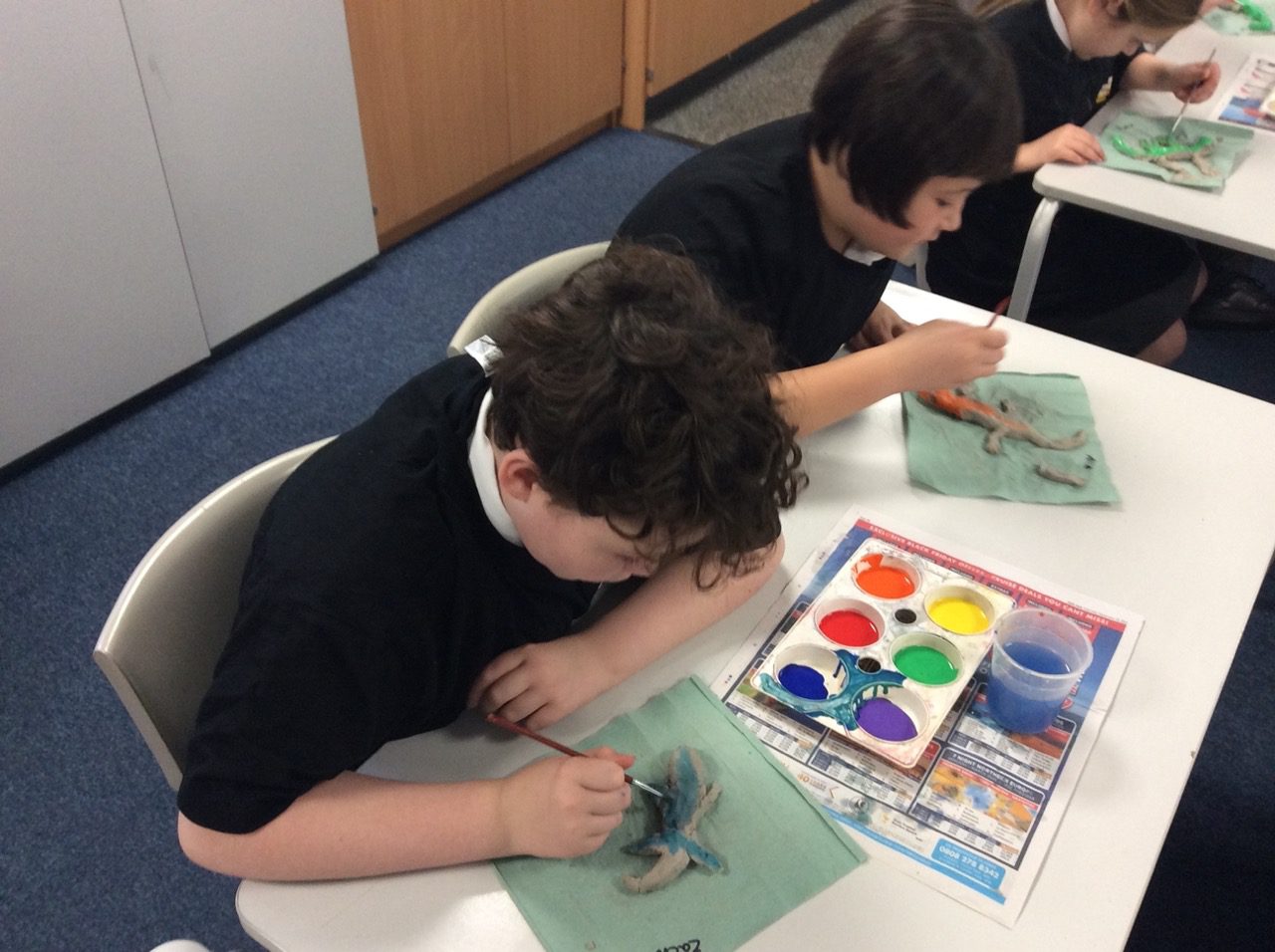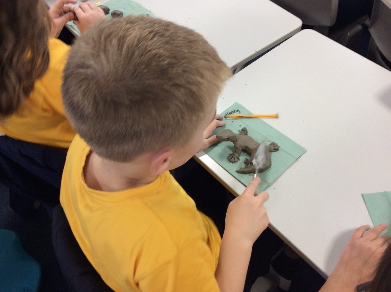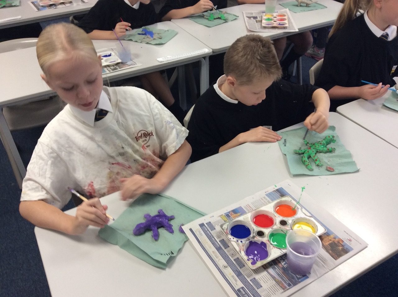Year 5 are reading “Holes,” as part of our America topic and have been using various materials and techniques to create lizards. Inspired by the work of famous Spanish architect Gaudi, who created the mosaic dragon, Year 5 have created mosaic lizards and sculpted lizards using clay. They used the appropriate tools to add detail such as eyes and scales, drawing on inspiration from nature and their pattern skills they have been developing.