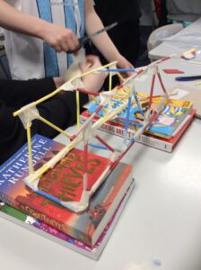 The children learnt about the different types of bridges and their structural differences; beam, arch, suspension and cantilever or “truss.” Year 5 then built a truss bridge using paper straws…