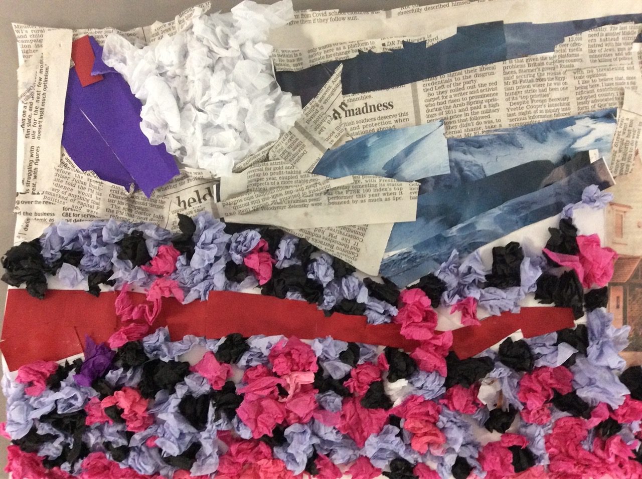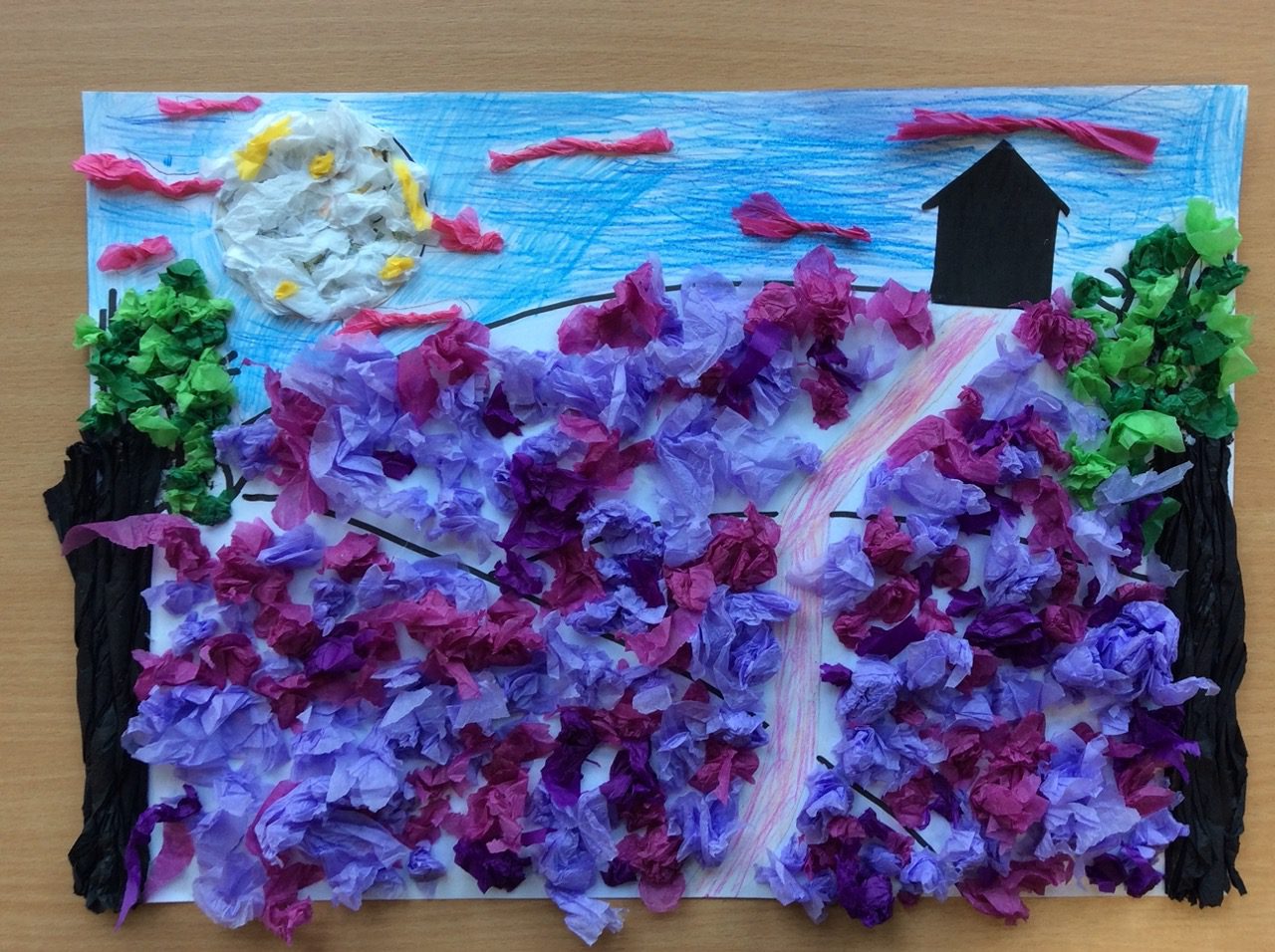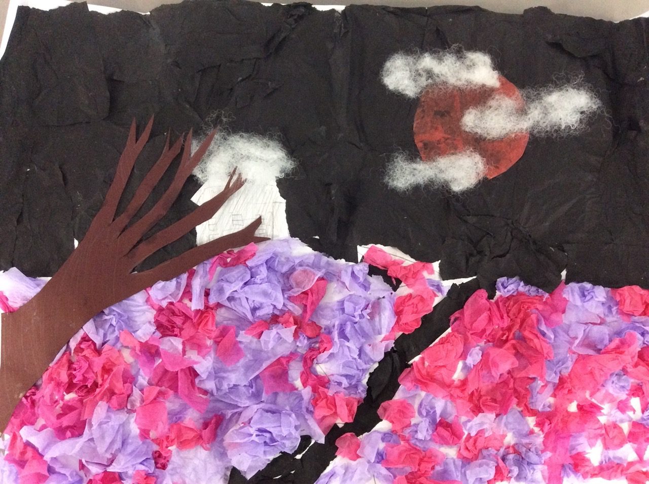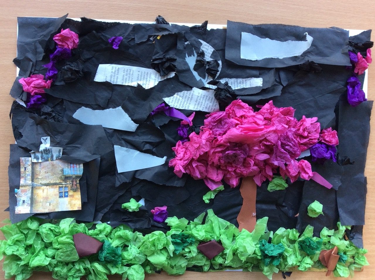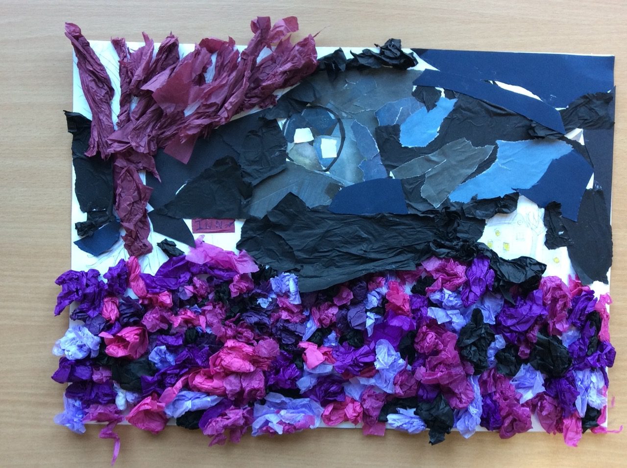 “The road was a ribbon of moonlight over the purple moor, And the highwayman came riding—Riding—riding— The highwayman came riding, up to the old inn-door.” Year 5 created a setting collage to capture the mood and atmosphere in the poem, The Highwayman. We used sensory details to guide our collage choices, considering the poem’s description of the moon, moor and inn. “The wind was a torrent of darkness among the gusty trees, The moon was a ghostly galleon tossed upon cloudy seas…”