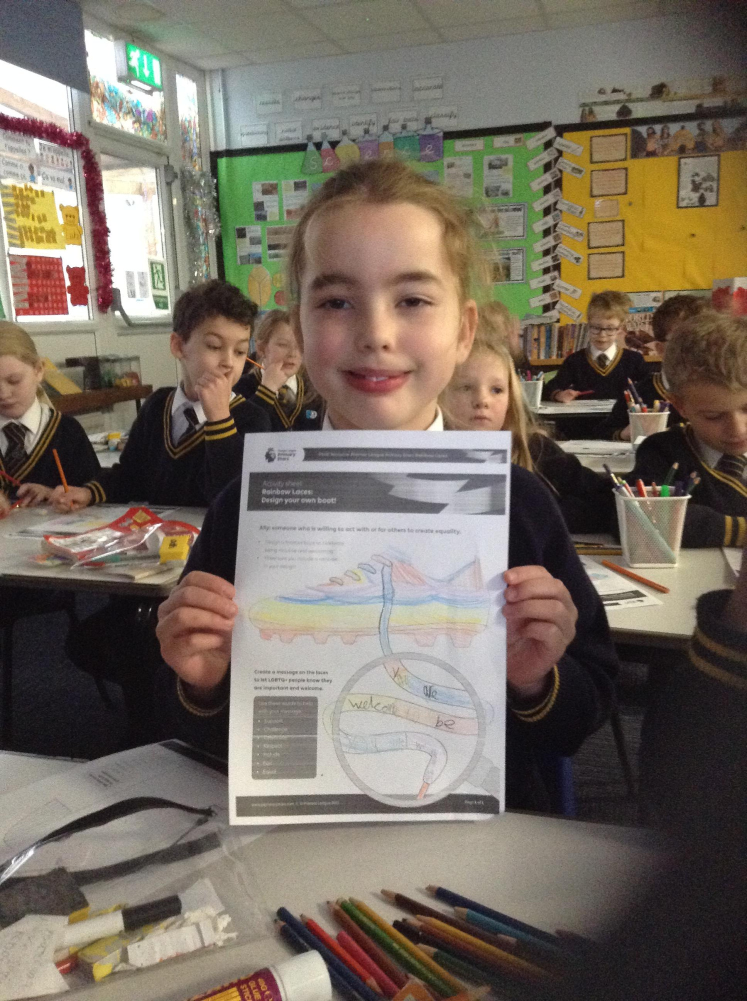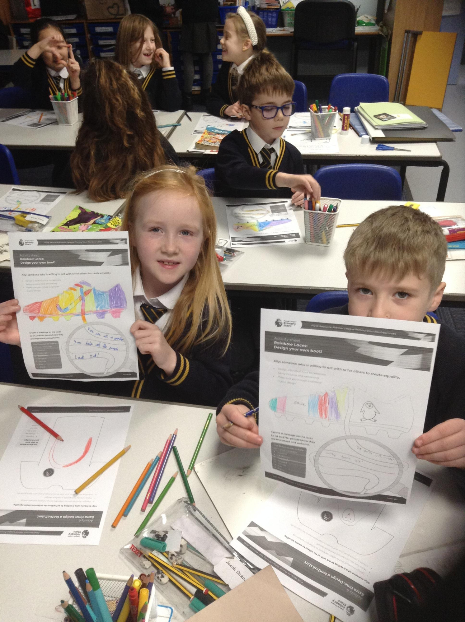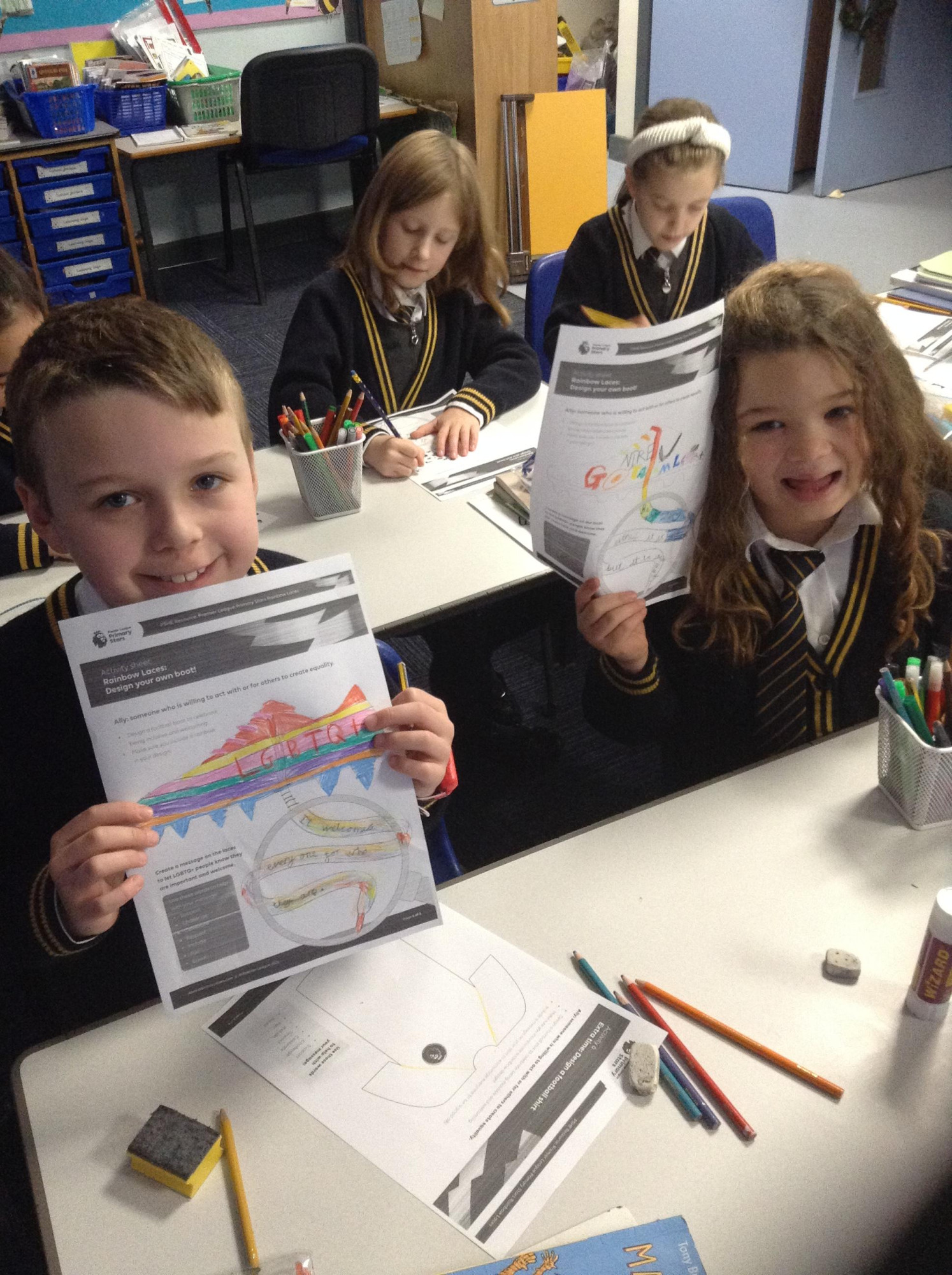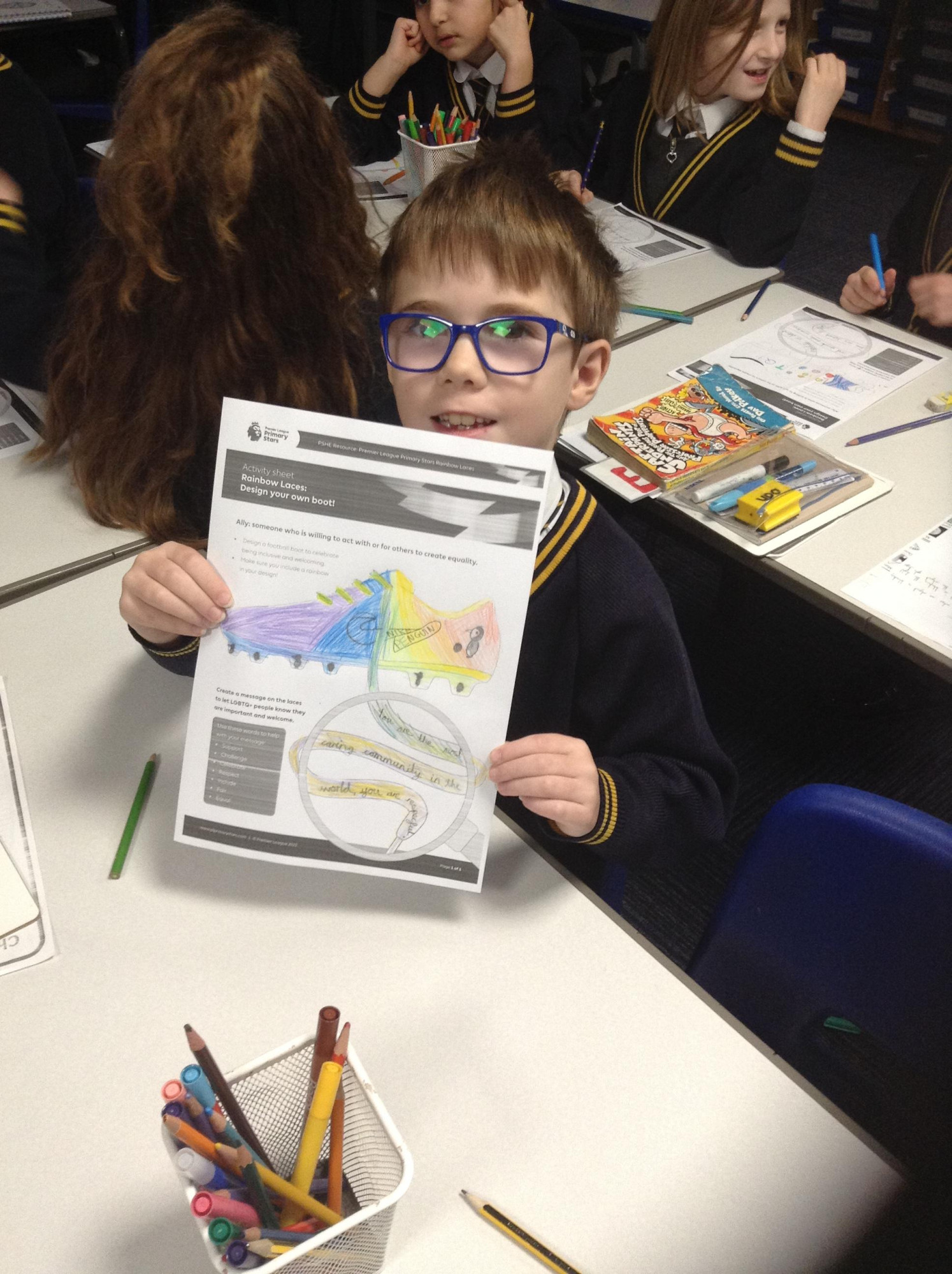 December 2022 – 3R learning about the rainbow laces campaign and designing their own football boots