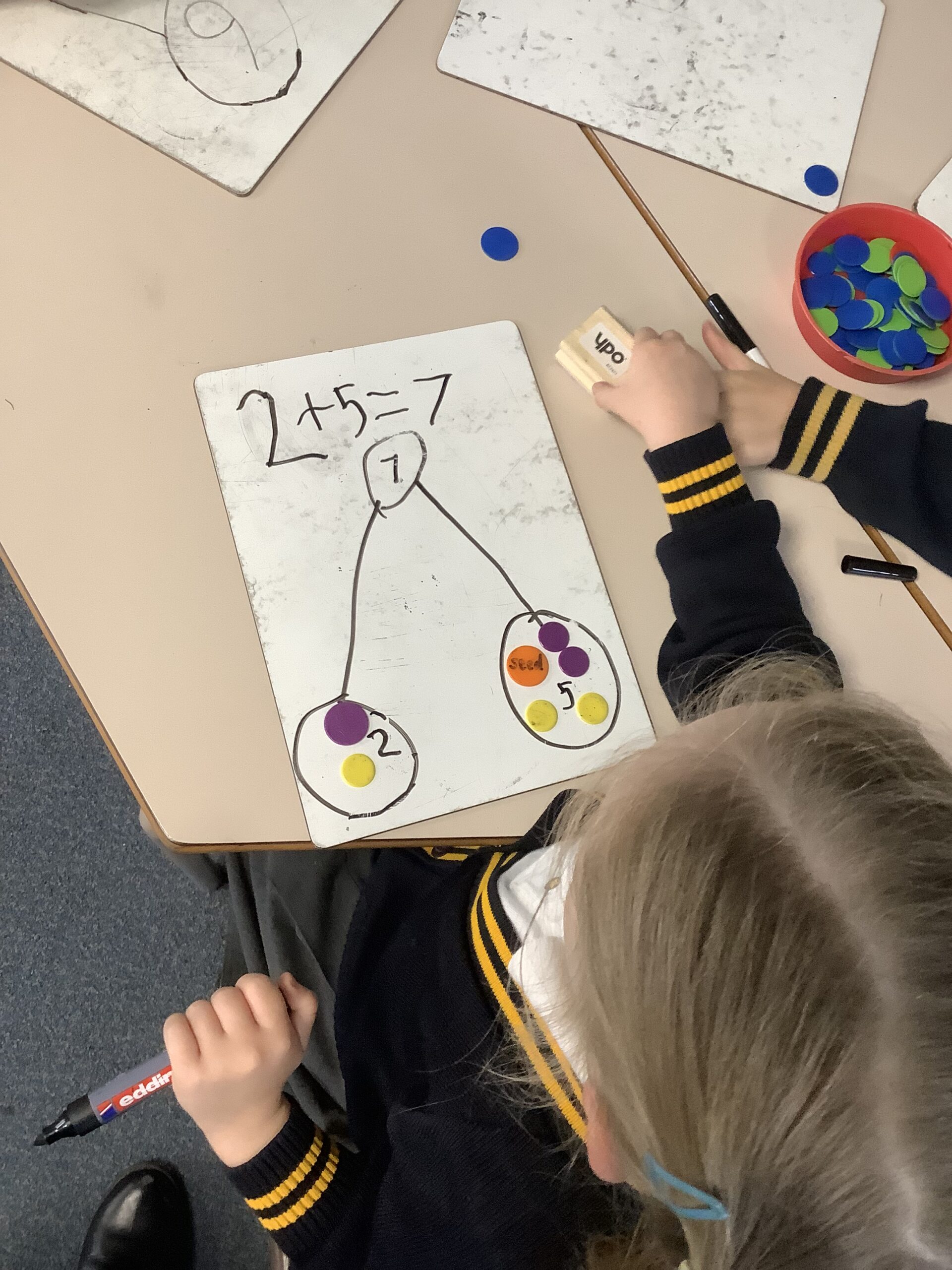Year 1 have been learning about part whole models. We have used counters to help us to write number sentences. Here are some examples